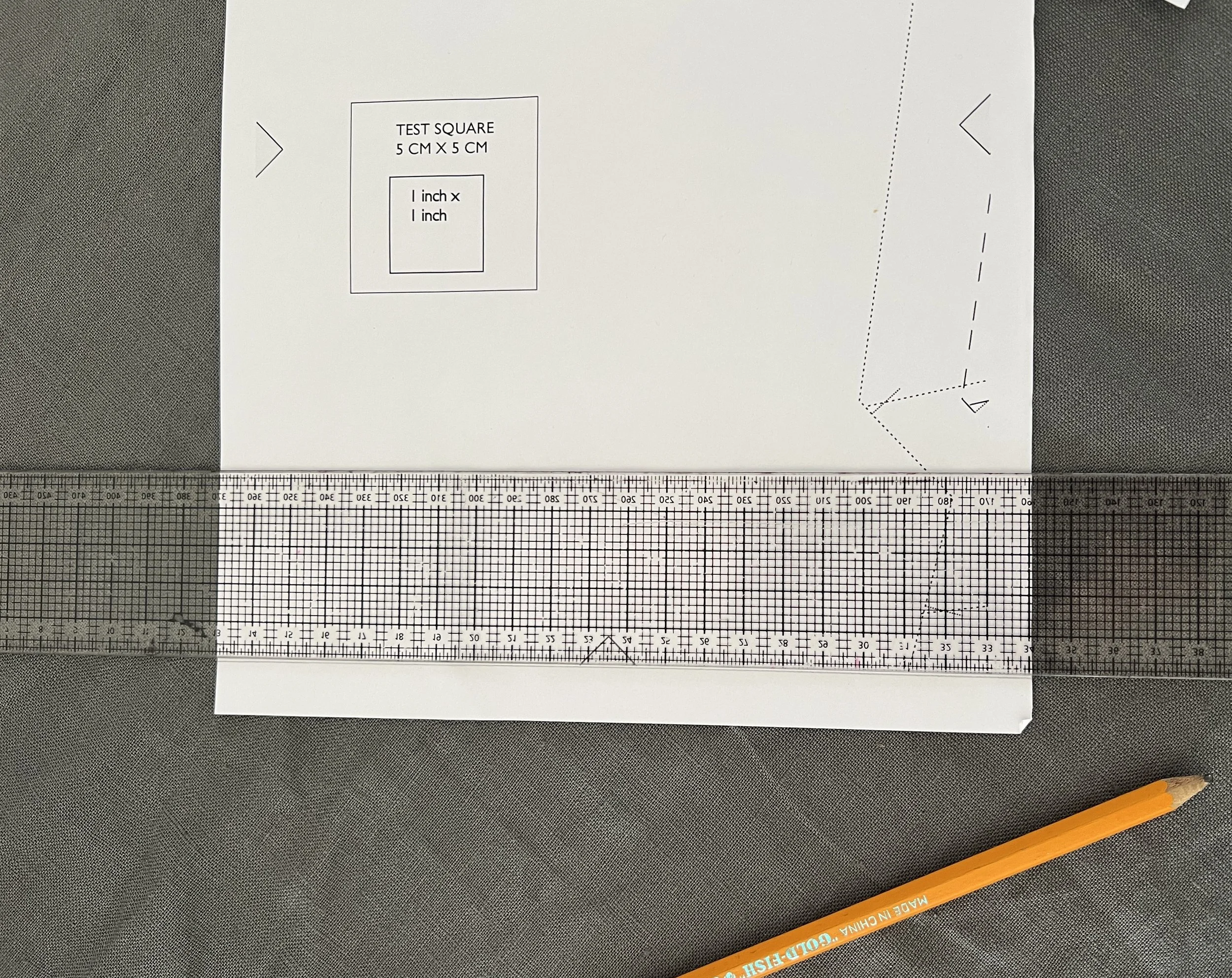 Most patterns include a test square (5cm x 5cm or 1" x 1"). Print this page first and measure carefully: