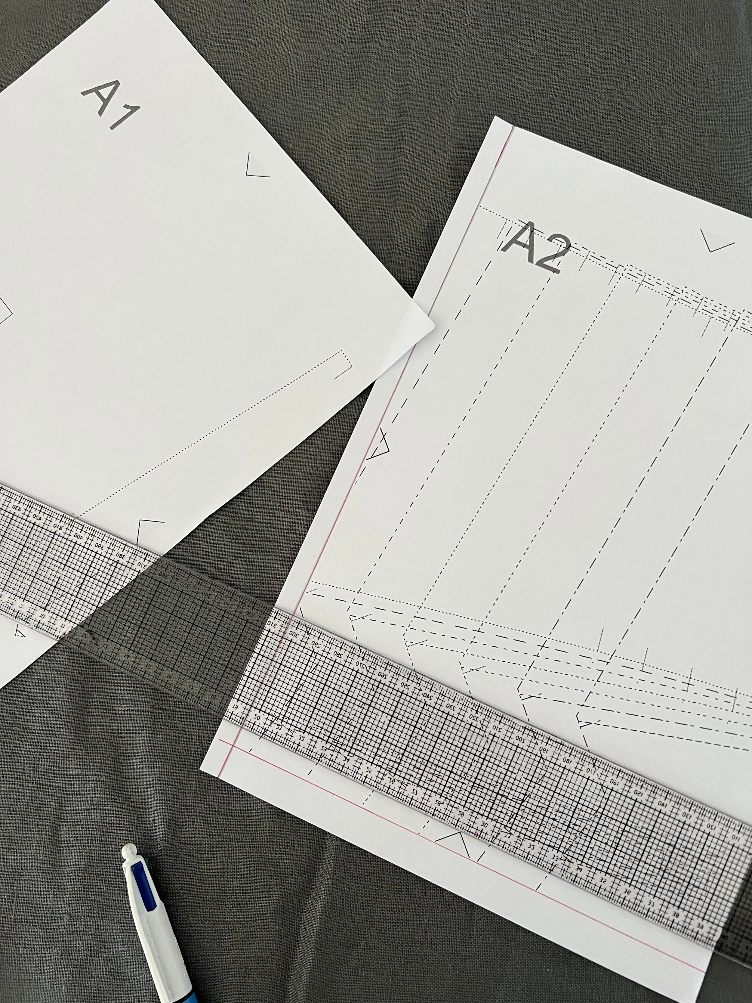 An A4 (or US Letter) pattern comes in tiled pages that need to be assembled like a puzzle to create the full-size sewing pattern.